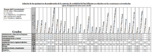 Relación de los parámetros de ponderación de la materias de modalidad del bachillerato en relación con las enseñanzas universitarias (para el ingreso al curso 2017-2018)
