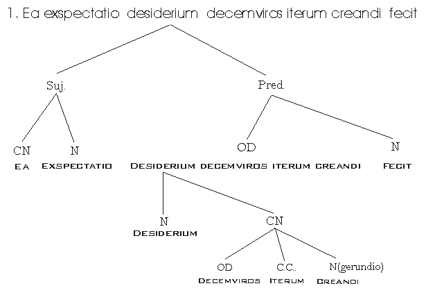 Nota: desiderium decemviros creandi: cuando el gerundio lleva un OD, el sintagma se puede transformar en otro con gerundivo, que tenga su misma función (complemento de desiderium) y significado: desiderium decemvirorum iterum creandorum.